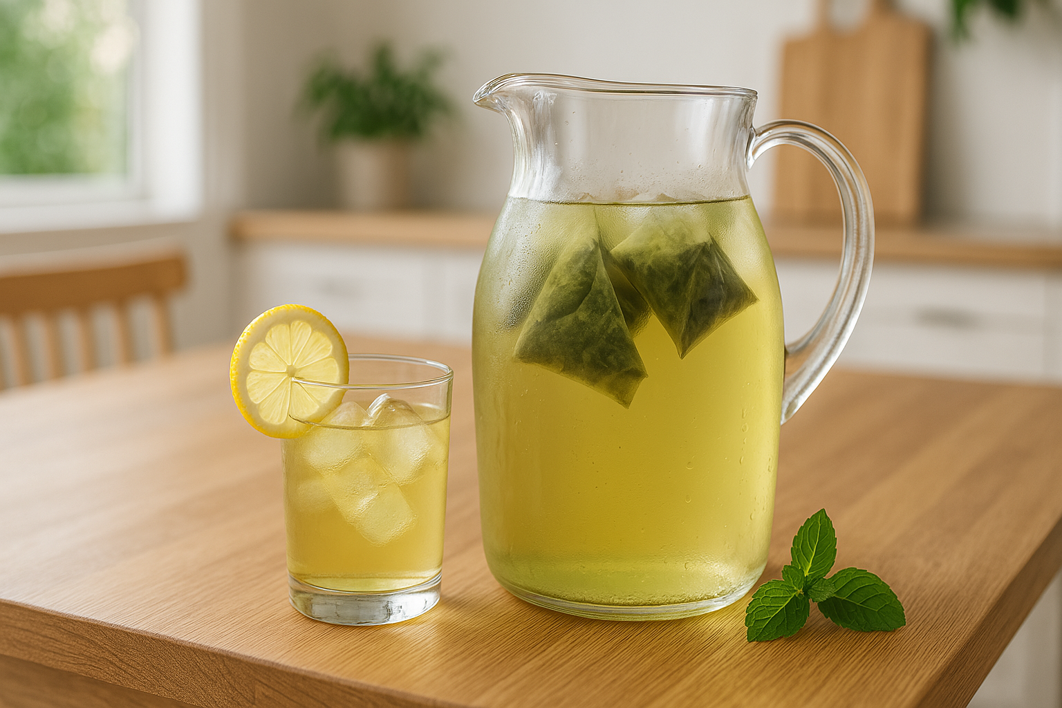 - Pynt med citronskiver eller mynteblade efter smag og nyd den forfriskende Mizudashi-te!