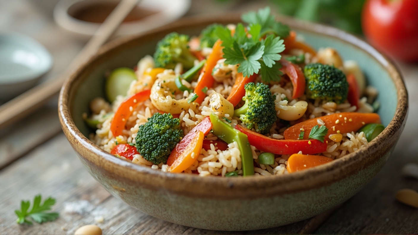 Denne opskrift på stegt ris med grøntsager er en sund og velsmagende alternativ til den klassiske stegte ris. Ved at bruge brune ris og en række farverige grøntsager, skaber du en ernæringsrig ret, der er fyldt med fibre og vitaminer. Stegt let i sesamolie for en lækker, nøddeagtig smag uden at overvælde retten med unødvendige kalorier.