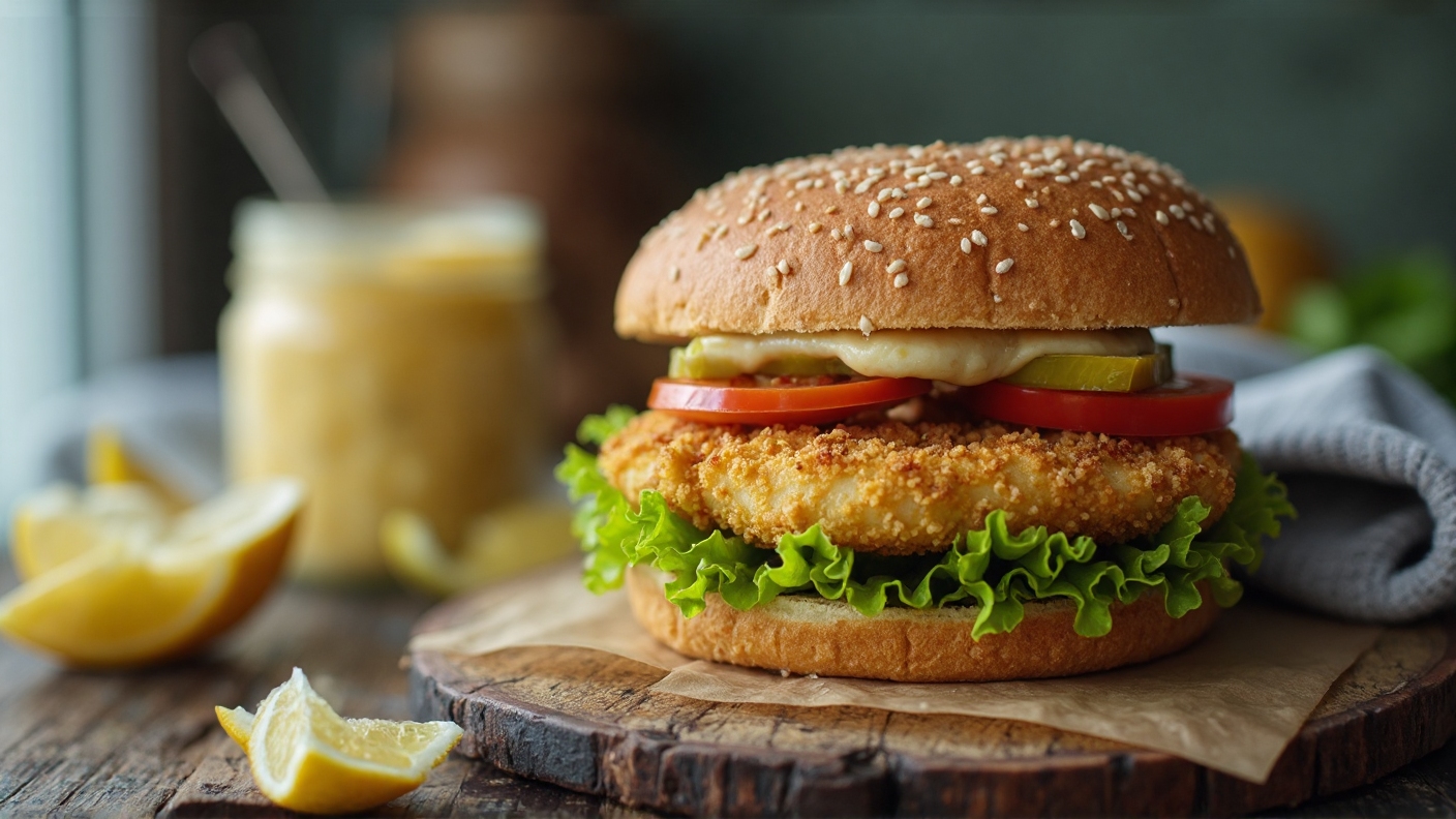 Et sundt twist på den klassiske fiskeburger! Ovnbagte hjemmelavede fiskepinde, grov bolle, sprød salat og en cremet remoulade på skyr – en perfekt kombination af sundhed og comfort food.