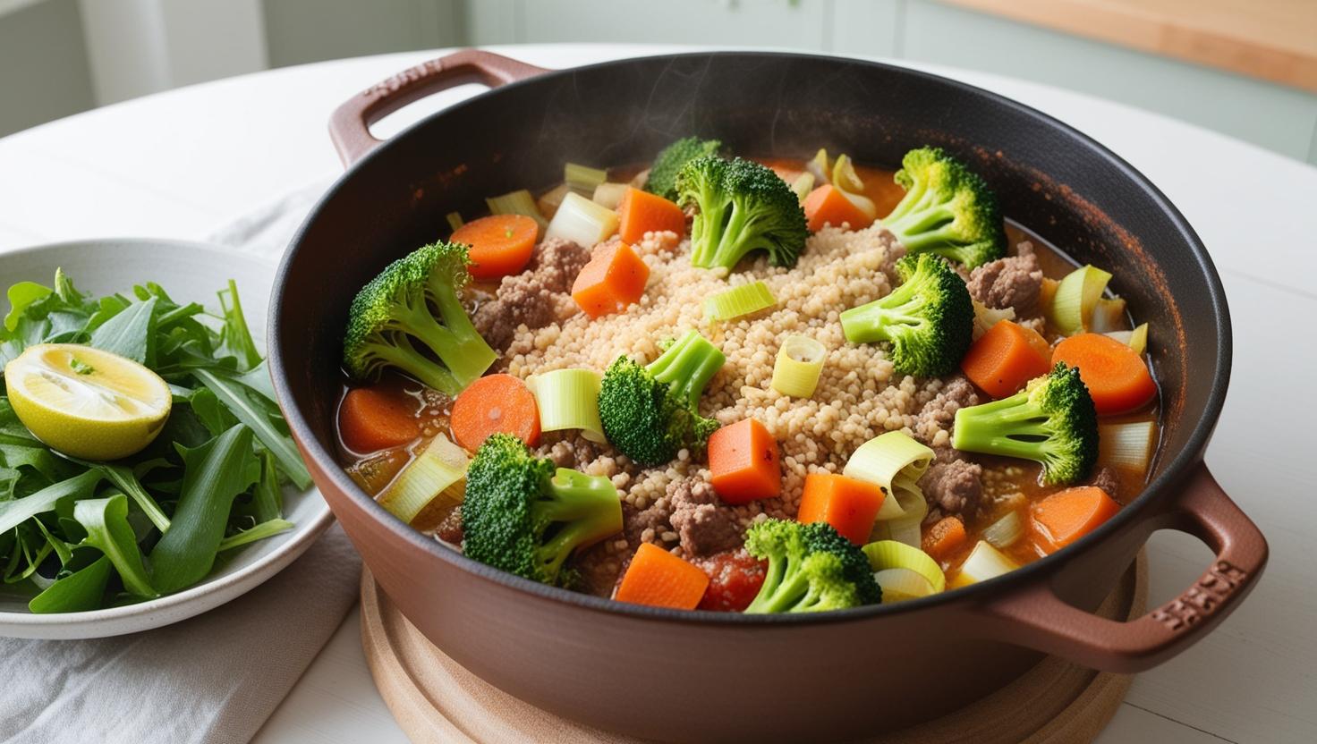 One-pot med hakket oksekød, bulgur og grøntsager