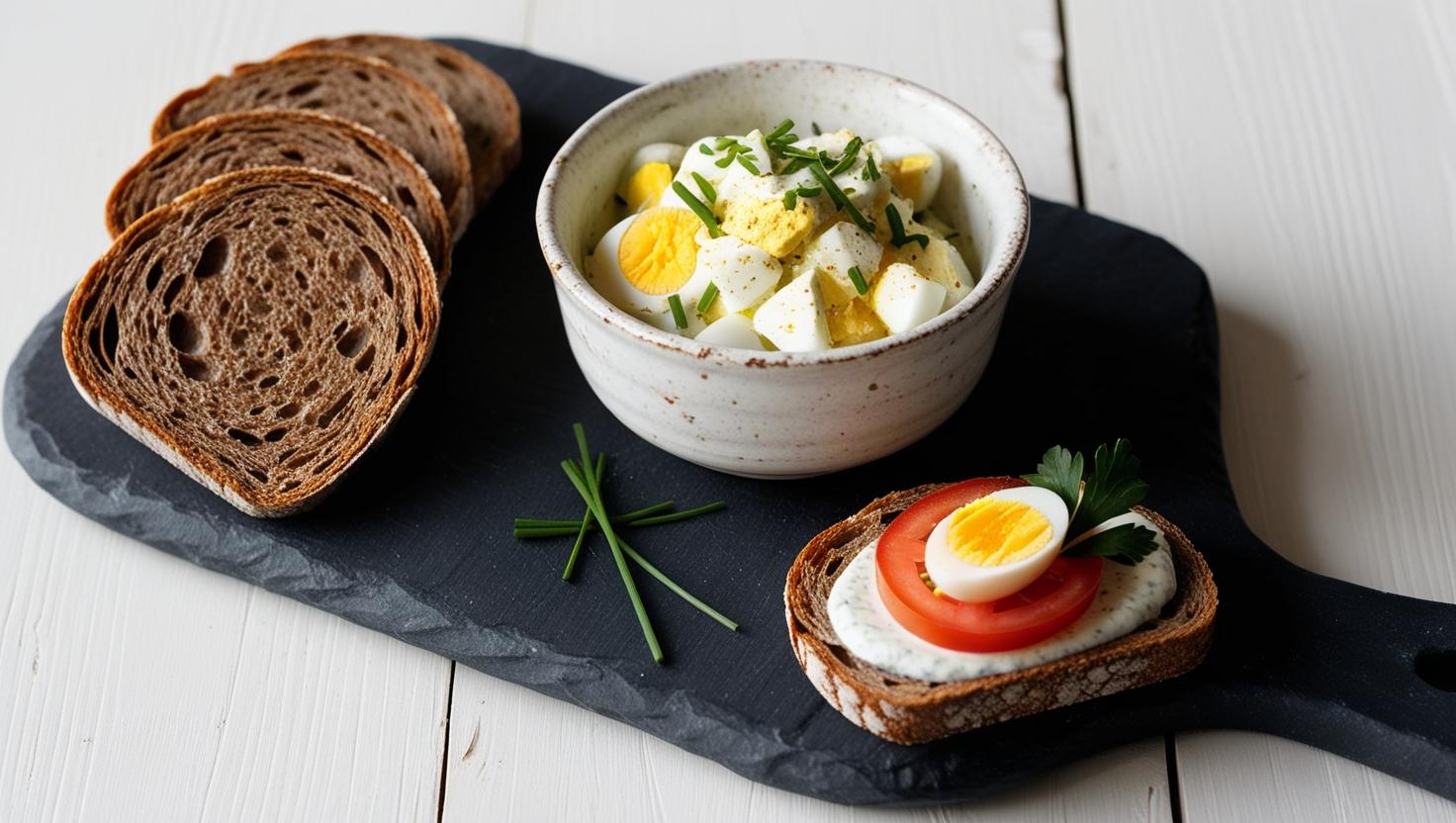 En let og cremet æggesalat uden mayonnaise – perfekt til rugbrød, wraps eller som fyld i en sandwich. Hurtig at lave og mættende på den gode måde.