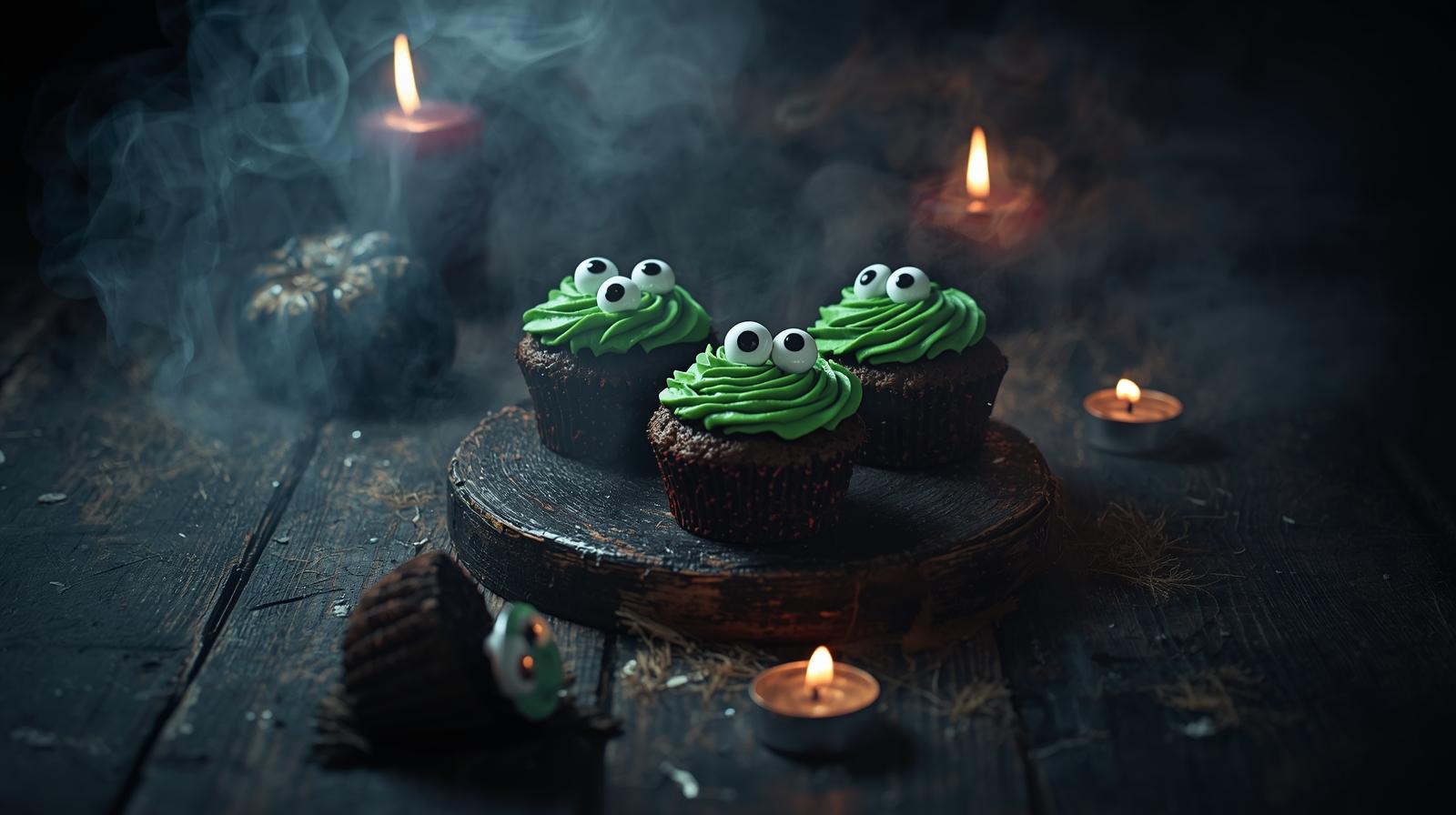 Der er noget helt særligt ved at bage til Halloween. Det handler ikke kun om smagen, men om grinene, glasuren og alt det klistrede sjov, der følger med. Her får du to versioner af de samme monster-muffins – begge pyntet med grøn glasur og slikøjne, men med hver deres personlighed.