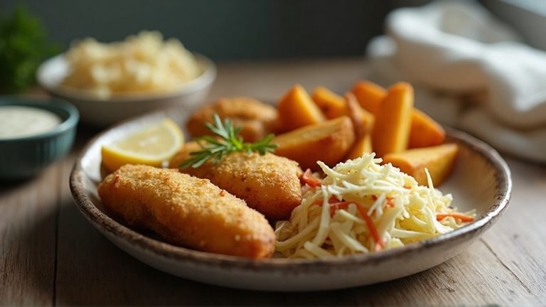 Et sundt og velsmagende alternativ til den klassiske fastfood-version. Fiskepindene er bagt i ovnen, kartoflerne er sprøde og kålsalaten giver friskhed og knas – en perfekt hverdagsret til hele…